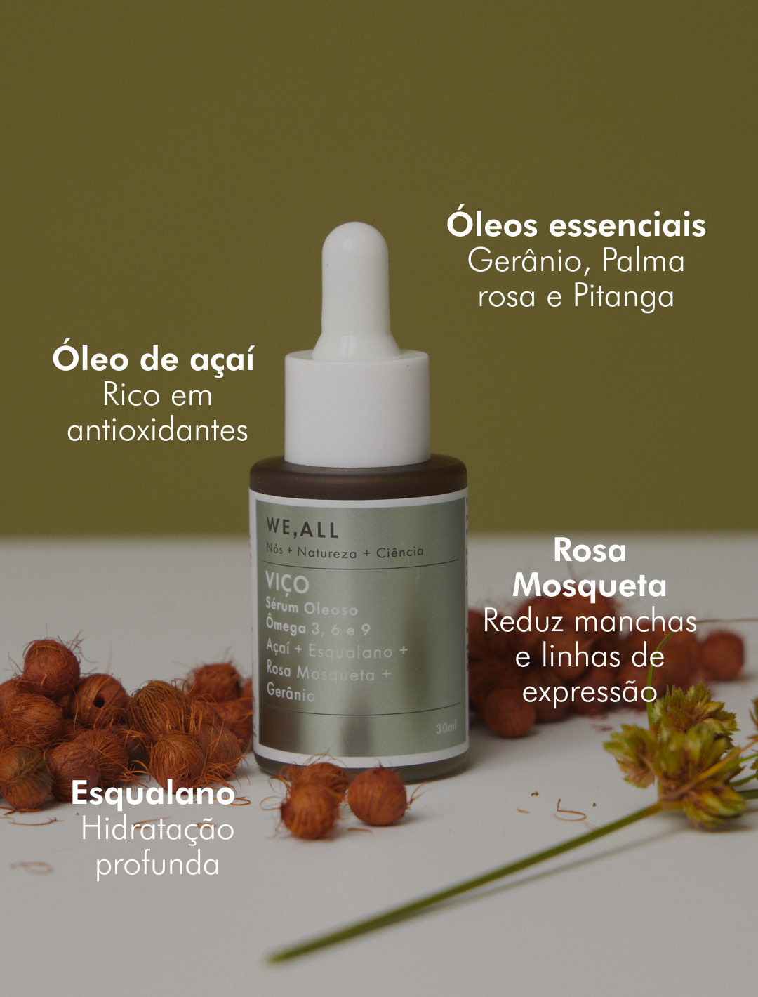 - Principais ômegas em um só produto 3,6 e 9. Lembrando que o 3 e o 6 o corpo não produz. Composição de óleos vegetais especiais com alta concentração de antioxidantes e ômegas. Os ômegas são essenciais para a emoliência da pele, reforçando a barreira cutânea e evitando o envelhecimento precoce da pele pelos danos causados pelo meio ambiente.
